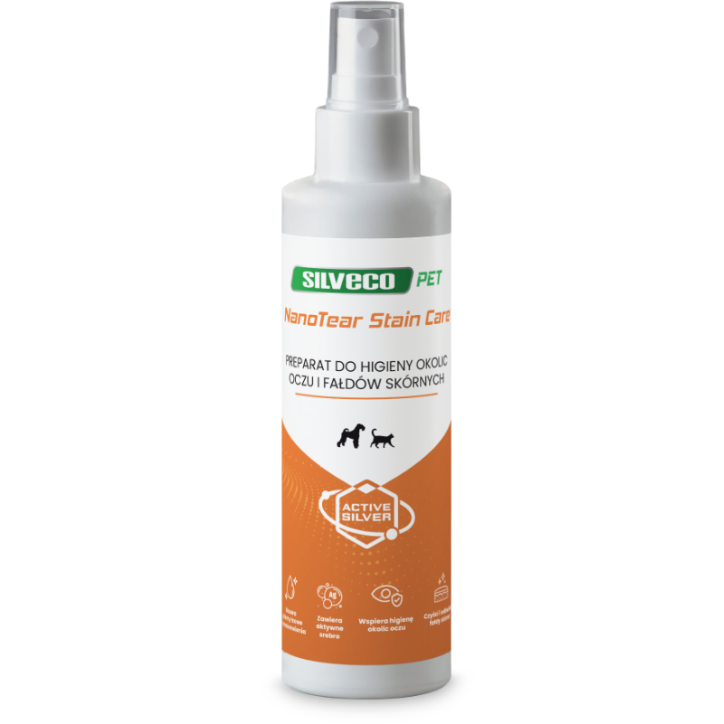to preparat przeznaczony do systematycznej higieny okolic oczu u psów i kotów, w miejscach narażonych na powstawanie plam łzowych i przebarwień. Formuła zawiera aktywne srebro, wspomagające utrzymanie czystości skóry, kwas borowy i tetraboran sodu działające oczyszczająco na osady. Wyciąg z nagietka koi skórę, łagodząc podrażnienia.